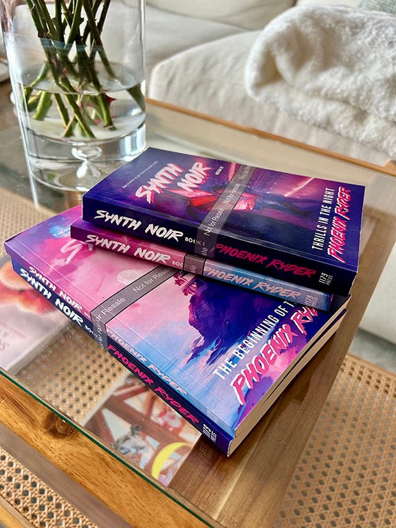 I have news. Finally. The paperback versions for Book 1 are now available on Amazon. Book 2 will be released sometime in January, both ebook and paperbacks. As of right now I’m releasing Synth Noir in both trade and mass market sizes. Why? Because I freakin’ love mass market paperbacks!! That’s why. I’m obsessed with them and collect vintage mass markets from the ‘70s, ‘80s, and ‘90s. I like that they’re pocket-size and you can toss them in your beach bag. I know they’re not for everyone, but they are available for now if you are so inclined.